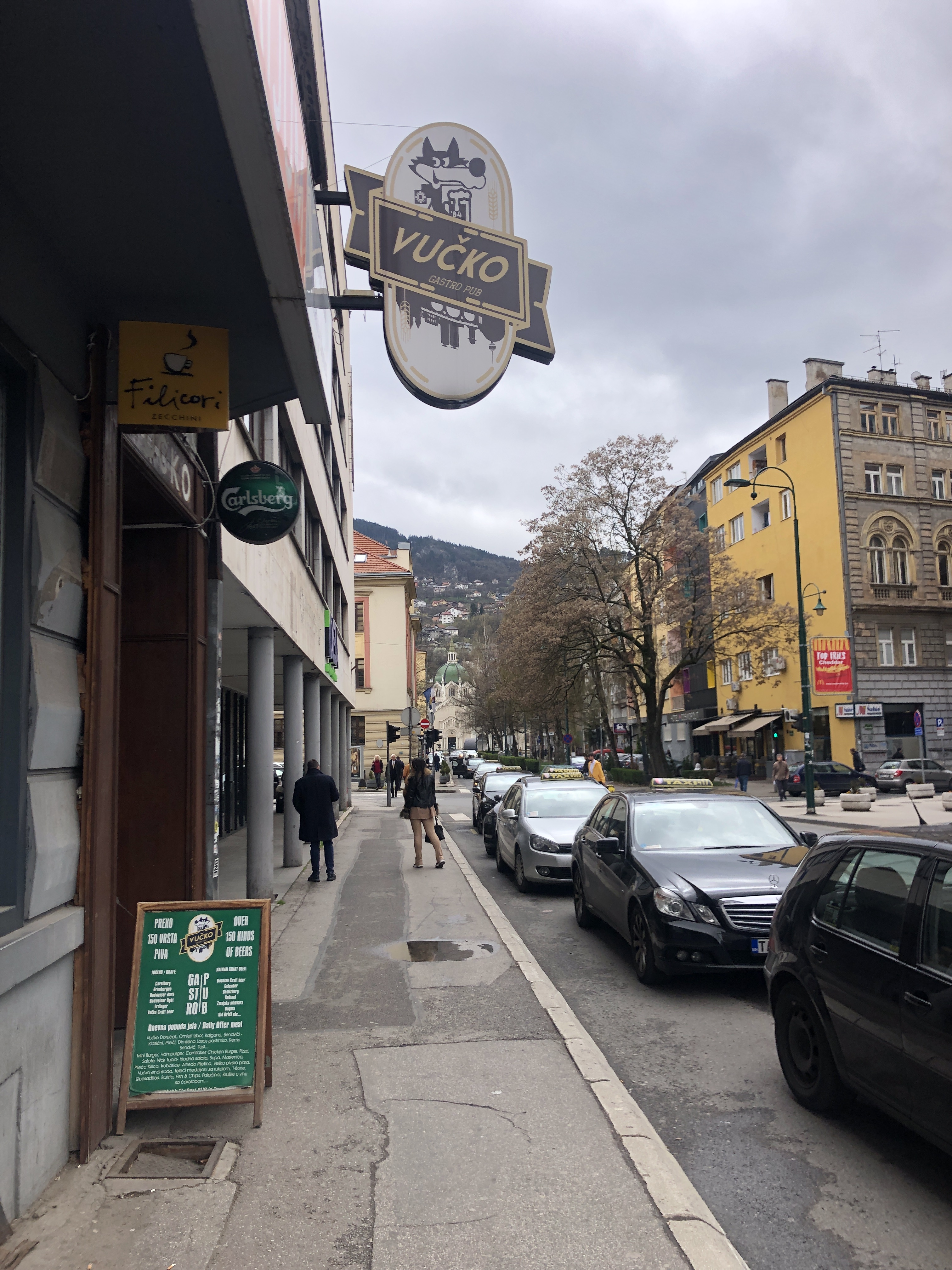 Continue to the the next craft beer bar which is a few hundred meters away. Gastropub Vucko has an extensive beer list with craft beers from Serbia, Croatia, Belgium and a couple of beers on tap. The sign outside says they have over 150 different beers to offer. Probably the best best beer selection in Sarajevo.