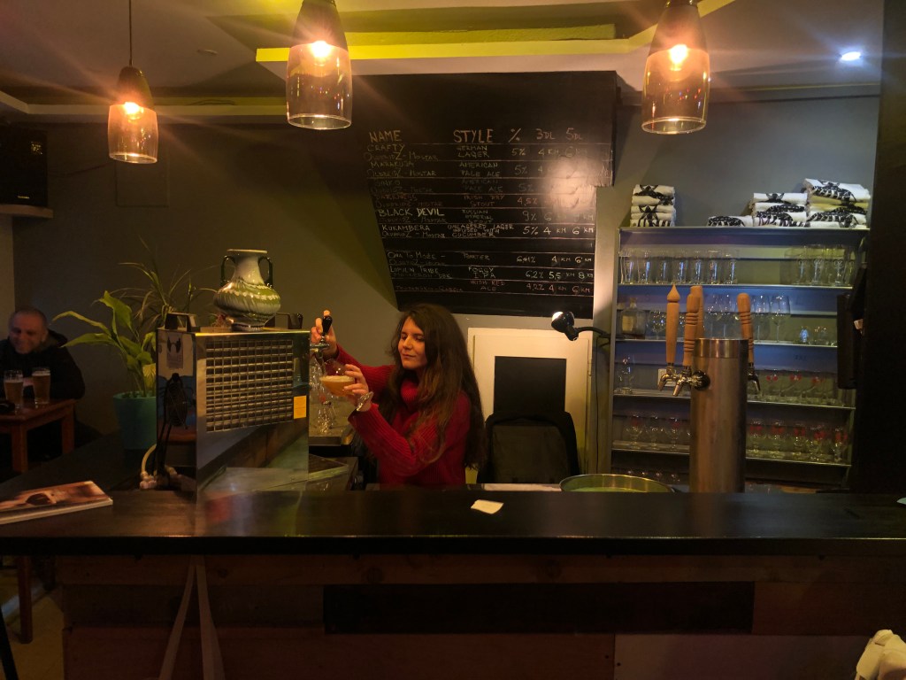 Make sure you have saved all the pins from this guide at your offline map, it’s time to start the journey. Begin along the main promenade and make the first stop at Fabrika which has 6-8 beers on tap and a good selection of craft beer. Delicious mixed meat platters goes perfect with beer. Their own beer should be ready now since it was on fermentation during the time of the visit. Fabrika is small and personal with helpful staff. They do also have happy hour with lager beers.