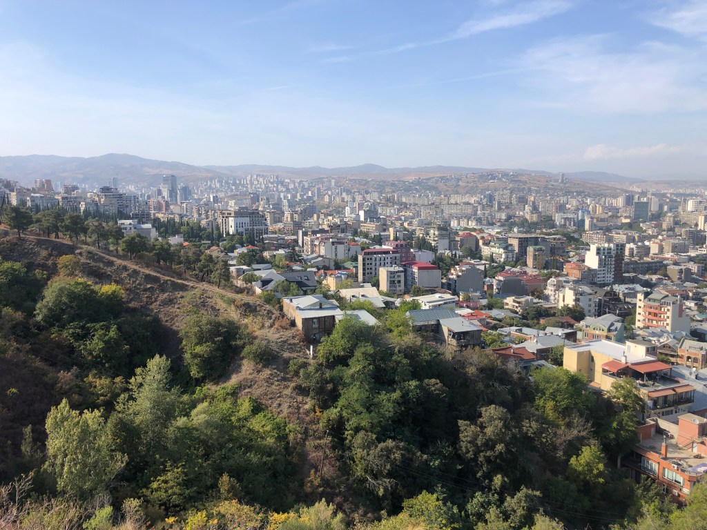 Many visitors are visa free so it’s just to get an entry stamp in the passport. Border crossing with bus from Armenia is easy and border police are speaking English. Look at this reel from the trip between Armenia and Georgia. If you enter by air it’s really fast and smooth. You just have to provide the adress of your hotel. Corruption and criminality is low but 20 years ago it was completely different. The corruption was high but the government did a good clean up. Since the country is candidate for both NATO and the European Union they are working hard to develop. The tourism is booming so there are many hotels to choose from but you need to book a few weeks before to avoid high prices. If you arrive from Armenia it feels like there are 3-4 times more tourists in Georgia. Many restaurants and hotels does not take card so make sure you have some cash, you can easily use any ATM to take out money. One thing you notice is all the stray dogs that roam around the streets but most of them are vaccinated. Tbilisi is surrounded with hills easy to walk up to, bring proper shoes for a walk with a view.