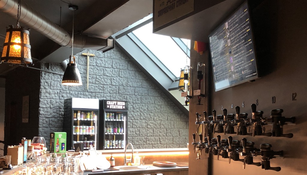 Craft Beer station is a new bar and a 20 minute bus ride from town. Take bus nr 3 or 20 and then walk a few hundred meters to reach Craft beer station. It’s in a large suburb with high rises and the area looks a bit run down. When you enter it becomes clear that the name and the interiour design matches well. It’s a train station. It’s fresh and modern which surprises the visitor when the surrounding area feels like something from the old Soviet era. The impression is a bit rough for sure so it’s a pleasant surprise with 12 taps and a screen showing the current beers. They have often a few taps with Polish craft beers but mostly Latvian crafts. You can also choose between 20-30 beers on bottle from the fridge.