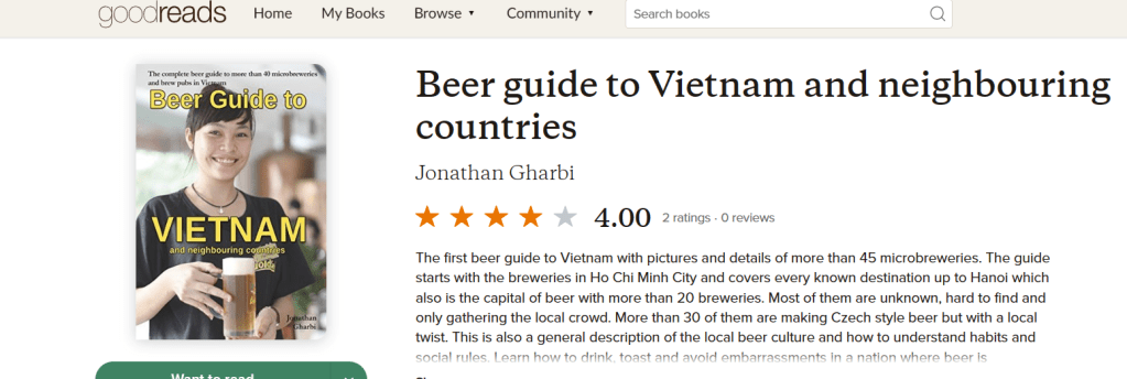 The book was published in 2014 by me and the first to describe the Vietnamese beer scene with history and pictures from 2012-2014. To follow up and publish a complete new guide would take time but is still a dream to do.