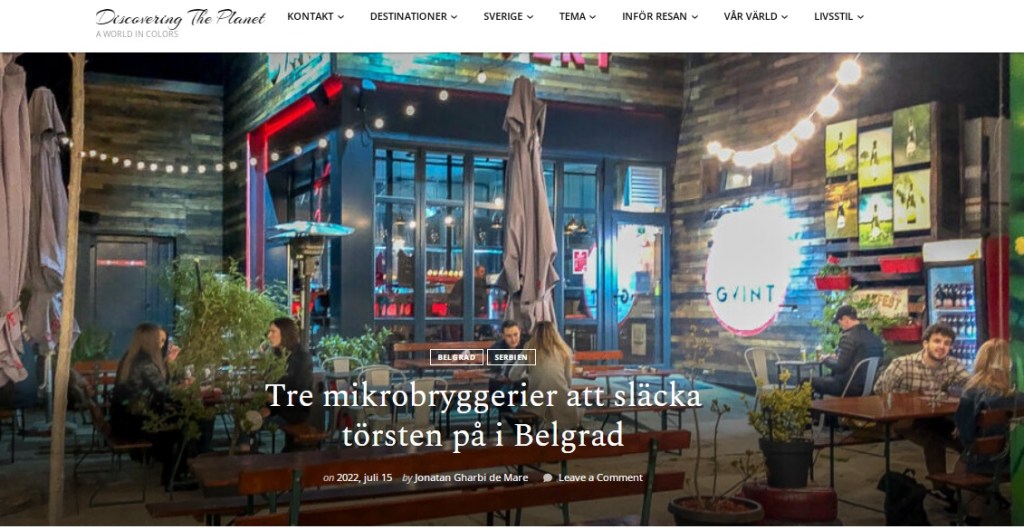 Article on craft beer in Serbia and Belgrade, 15 July 2022, for Discoveringtheplanet online travel blog, in Swedish. https://www.discoveringtheplanet.com/tre-mikrobryggerier-att-slacka-torsten-pa-i-belgrad/