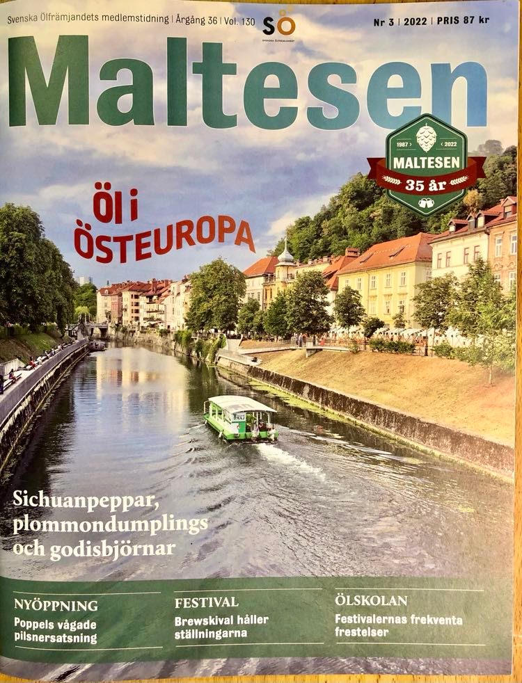 Beer guide to Slovenia, Latvia and Hungary on 14 pages in total. By Jonathan Gharbi de Maré and Pontus Fredriksson (Hungary part ). Printed magazine Maltesen September 15, nr 3, 2022 (Swedish Beer Association member magazine).
