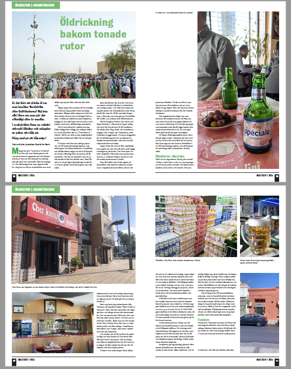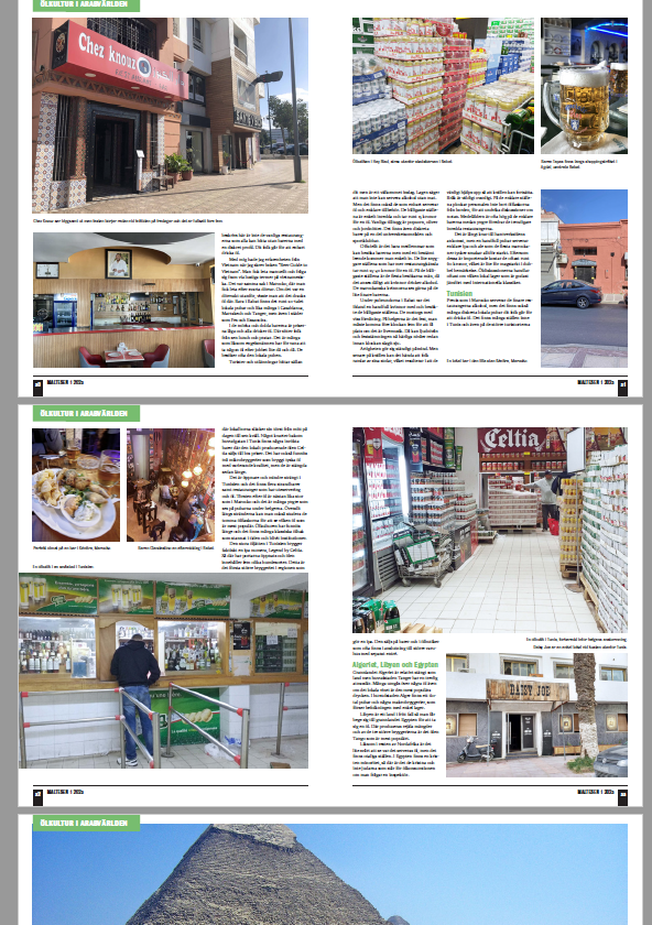 Beer guide to the Arabic world and North Africa on 9 pages in total. Printed magazine Maltesen March 2023, nr 1, 2023 (Swedish Beer Association member magazine).